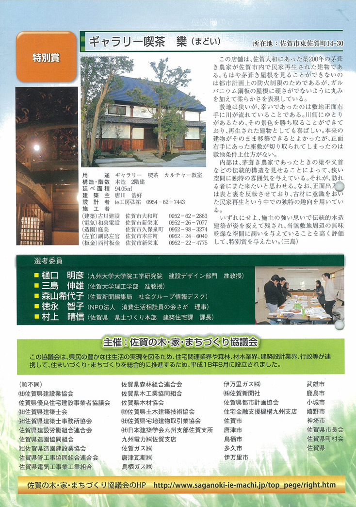 2007年 第1回佐賀の木・家、リニューアル・まちづくり賞の受賞作品