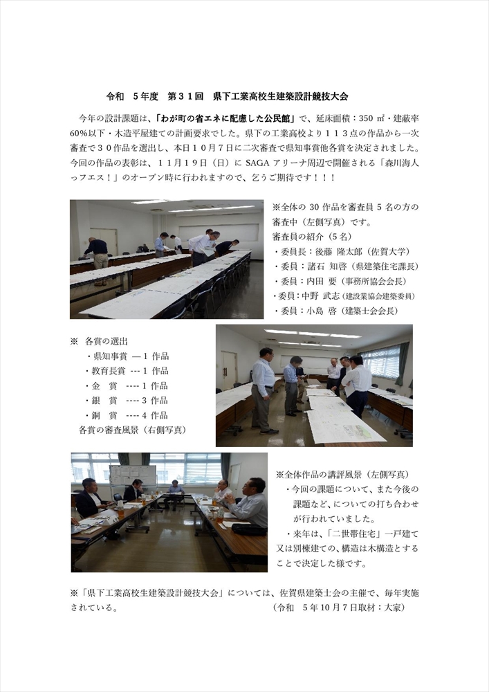 県下工業高校生 建築設計競技大会 取材報告(令和5年10月8日)
